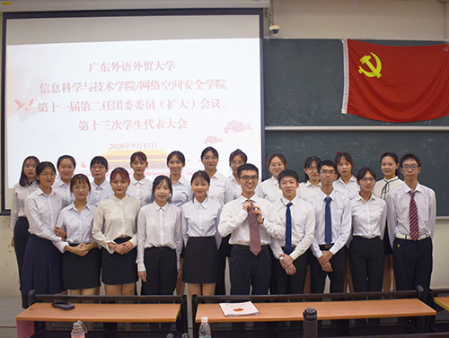 本网讯 9月17日,广东外语外贸大学信息科学与技术学院/网络空间安全学院(以下简称“信息学院”)第十三次学生代表大会在教学楼F514成功举办。学院党委副书记肖锋、团学指导老师刘水秀列席本次会议。本次会议旨在汇报第十二届一任学生会的工作,通过选举选出第十三届一任学生会委员。