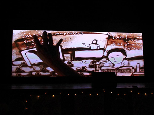 晚会以2003级计算机科学与技术专业校友麦燕带来的沙画表演启幕。表演者用沙画艺术回忆了信息学院20年的成长历程。