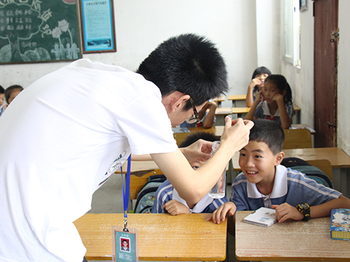 本网讯 7月7日,逐夏熙影服务队在怀集连麦中心小学的三下乡服务进行到了第二天。队员与学生在妙趣横生的自然科学课、物理课和英语课中结束了午前时光。此外,服务队的“导师制”于今日正式拉开帷幕。