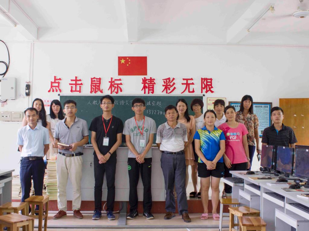 一天的培训结束后,两位培训员与教师们进行了交流,更进一步地了解当地关于电脑方面知识的程度,从交流中,两位培训员得知在怀集诗洞当地,电脑知识水平普遍不高,很需要类似本次培训的课堂的开设。两位培训员留下了各自的联系方式,方便可以与教师们的日后交流。交流过后,林校长热情的邀请两位培训员与教师们一起合照留念。