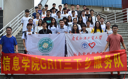 本网讯 7月10日,广东外语外贸大学信息科学与技术学院GRIT服务队来到肇庆市广宁县排沙镇八一希望中心小学,开展为期九天的“三下乡”活动。团委书记兼15级辅导员谢石顺特意驱车前来学校为队员们加油鼓劲,并合影送行。