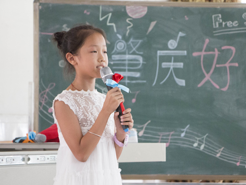 冠军梁晴阳小朋友认真演唱