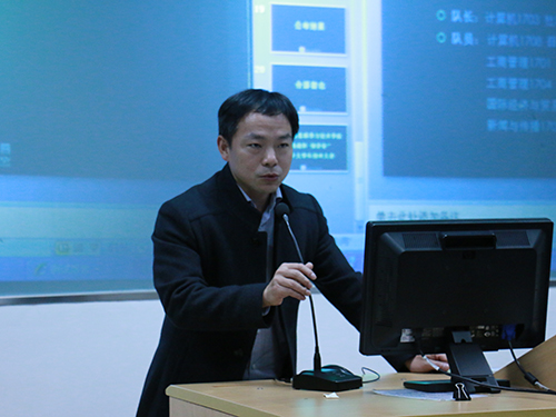 本网讯 11月23日,2017年 “挑战杯·创青春”广东外语外贸大学信息科学与技术学院大学生创业大赛决赛答辩会在实验楼B109成功举办。本次答辩会的评委有广东方堃科技有限公司董事长陈龙,广州皓雪商贸有限公司总经理、信息科学与技术学院06级校友谢超,松途电子商务有限公司总经理、政管学院05级校友赖子杰以及广东外语外贸大学创新创业教育学院教研室主任郗婷婷。此外信息科学与技术学院党委副书记麦培年莅临现场担任嘉宾。