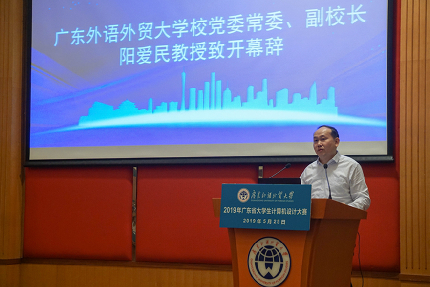 上午9时,大赛决赛开幕式在我校国际会议厅举行。我校党委常委、副校长阳爱民代表致开幕辞。他指出当下社会发展急需拥有创新意识、精通计算机技术的人才,广东省大学生计算机设计大赛为激发省内大学生学习计算机技术的兴趣和潜能、提升大学生运用信息技术解决实际问题的综合实践能力、培养团队合作意识和创新创业能力,搭建高校计算机教育经验与成果的交流平台。