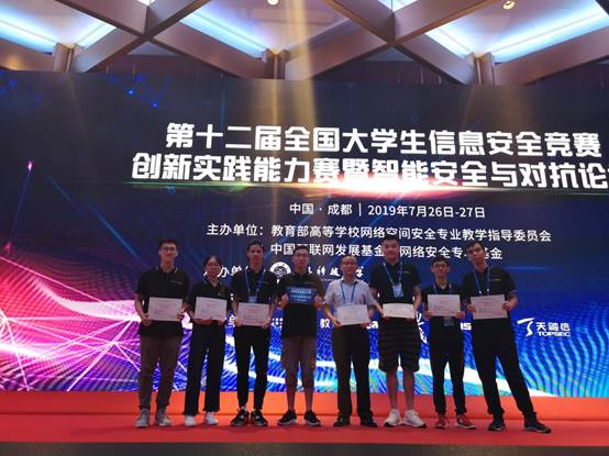 2019年第十二届全国大学生信息安全竞赛华南分区赛第二名,总决赛二等奖。