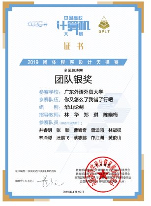 2019年“中国高校计算机大赛-团体程序设计天梯赛”国家级 |