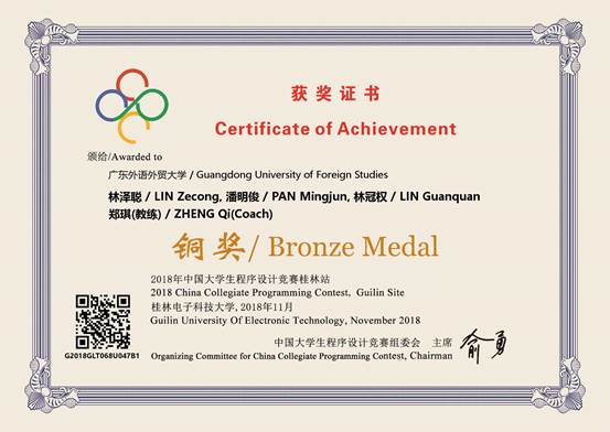 2018年“中国高校计算机大赛-团体程序设计天梯赛”国家级 |