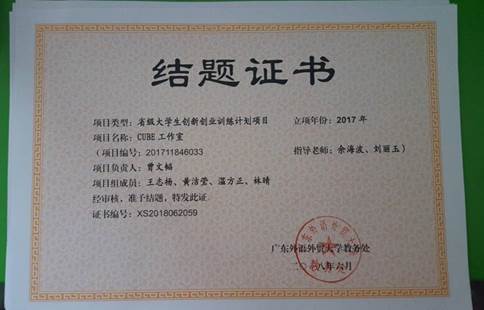 大学生创新创业训练计划项目“CUBE工作室” 省级立项