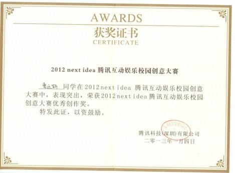2012 next idea腾讯互动娱乐校园创意大赛全国总决赛优秀创作奖