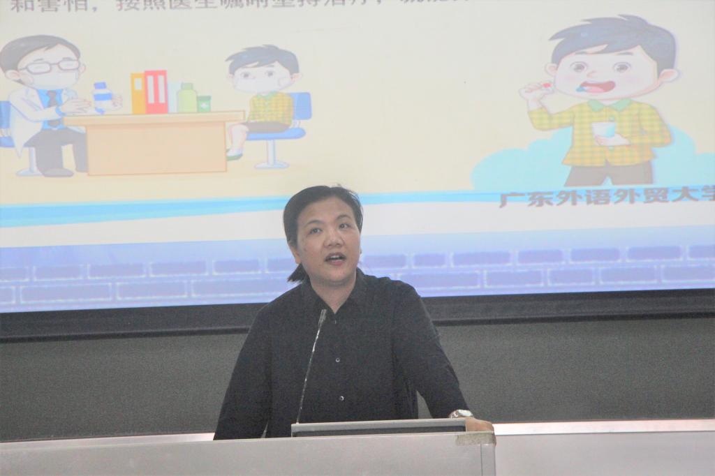 培训首先由门诊部杨春娜主任对同学们进行了疾病防疫知识培训。杨主任为在座的宿舍长们介绍了传染病的几种类型以及具体病例;生活中几种常见的传染病类型的传播途径,具体病情以及如何去防治此类传染病,她指出:“不发病不代表身上不存在传染源,增强体质我们才有更强的抵抗力。”,她鼓励同学们多进行户外运动,提高身体素质,提出在寝室要多通风,勤换气才能更好地预防疾病的发生。