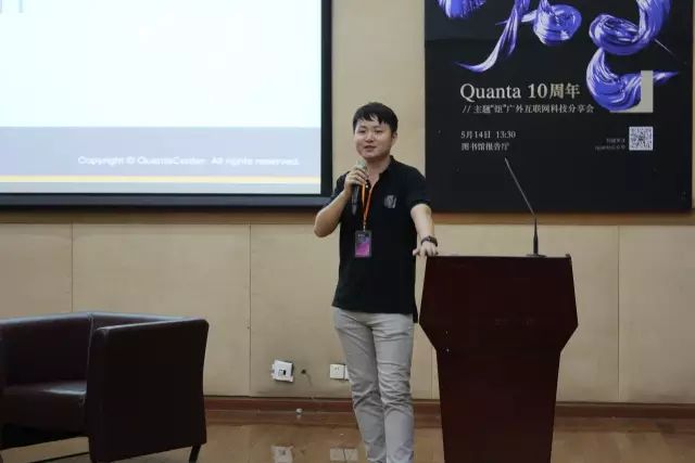 Quanta创始人兼第一届CEO游镕畅一身轻装,他首先感谢了学校以及学院领导的出席。正是老师们的支持以及Quanta人的坚持,才使得Quanta走到了今天。当时成立Quanta的他,万万没想到能有今天各届成员相聚一堂论江湖的日子。希望下一个十年是更值得回首的十年。