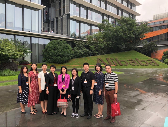 在阿里巴巴西溪园区,朱珍葶一行与阿里总部、阿里淘宝的人力资源负责人和在阿里工作的广外校友陈炳潮、徐心品、董宇等进行了座谈。阿里重点阐释了其用人理念、企业使命、价值观和人才观,并强调招聘的人才需与阿里的价值观相一致,具有强烈的使命感和责任感,不仅懂技术更要有家国情怀。在交流中,校企双方在人才需求的特质和培养方向上找到了共通点,协商今后加强人才培养的交流与合作。