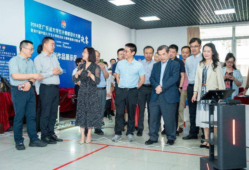 本网讯 2024年5月25日,由广东省教育厅主办的2024年广东省大学生计算机设计大赛暨第17届中国大学生计算机设计大赛粤港澳大湾区赛决赛在我校大学城校区成功举办。广东省教育厅高等教育处处长姜琳,我校校党委常委、副校长焦方太、校团委书记刘郎、现代教育技术中心主任娄会东、校党委宣传部副部长宾锐光、学生工作部副部长赵观音、我院党委书记柯晓华、副书记刘丽玉,以及85位专家评委、部分带队教师出席了决赛开幕式。开幕式由我院院长王常吉主持。