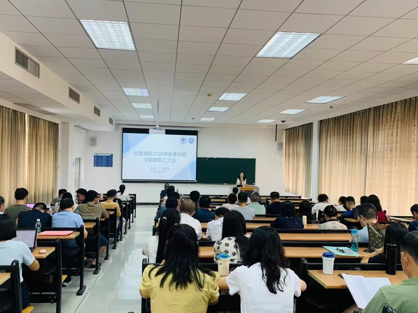 李霞简要汇报了暑假期间本科教学相关工作,强调了本学期本科教学重点事项。谢柏林总结了暑假期间学院外事工作情况,以及学院学生在学术和竞赛上获得的成绩,并布置下半年关于实验室建设、中外合作办学的工作。王连喜总结了暑假期间的科研成果,指出了科学研究方面存在的问题,并号召老师们为2025年高层次项目申报做好充足准备。刘丽玉从学生工作队伍情况、促就业工作情况和暑期社会实践活动等方面对暑假工作进行总结,并强调了做好学生返校及新生入学教育工作的重要性。