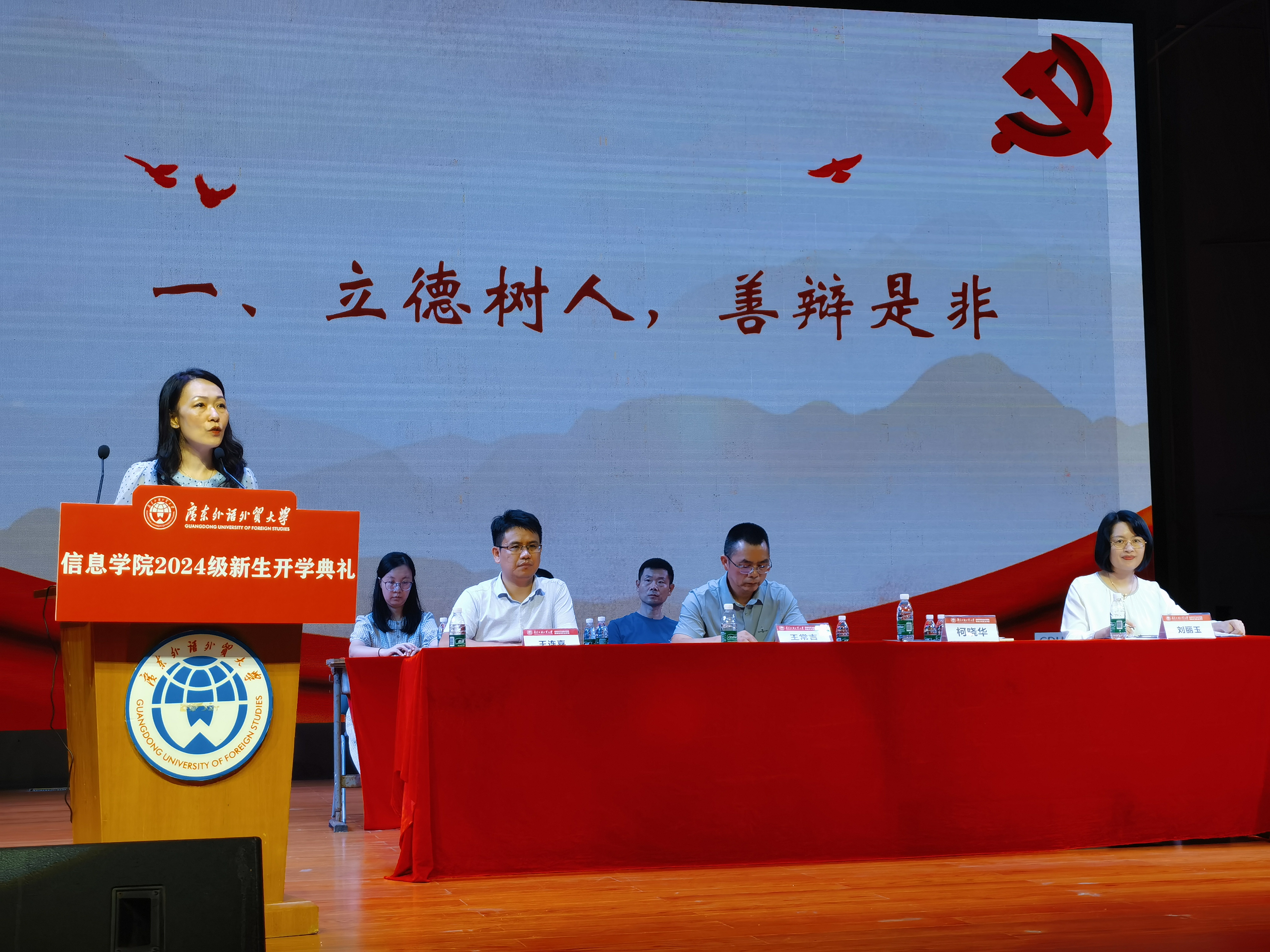 2024年9月9日,信息科学与技术学院/网络空间安全学院2024级新生开学典礼隆重举行。学院领导班子、系部主任、全体辅导员及2024级全体本研新生参加了开学典礼,会议由信息学院党委书记柯晓华教授、党委副书记刘丽玉主持。