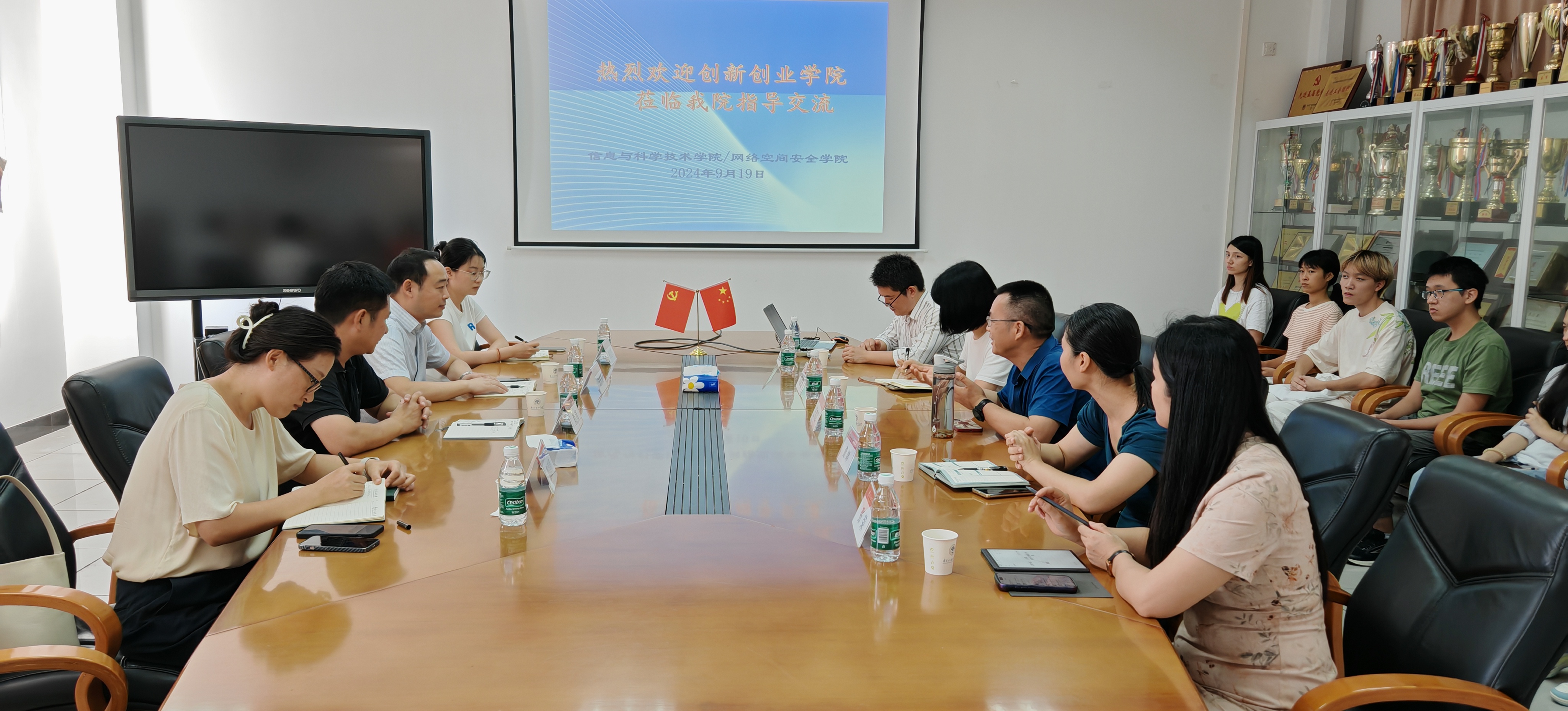 王常吉对创新创业学院一行来院交流表示了热烈欢迎。他指出,信息学院全体师生一直对创新创业抱有极大热情,希望借此次交流活动深入了解学校创新创业工作,增进沟通联系,拓展未来合作空间。刘丽玉介绍了学院16个学生创新创业团队的基本情况、科技创新品牌活动及平台,她指出此番与创新创业学院的深入交流一定能助力学院相关工作取得新突破。