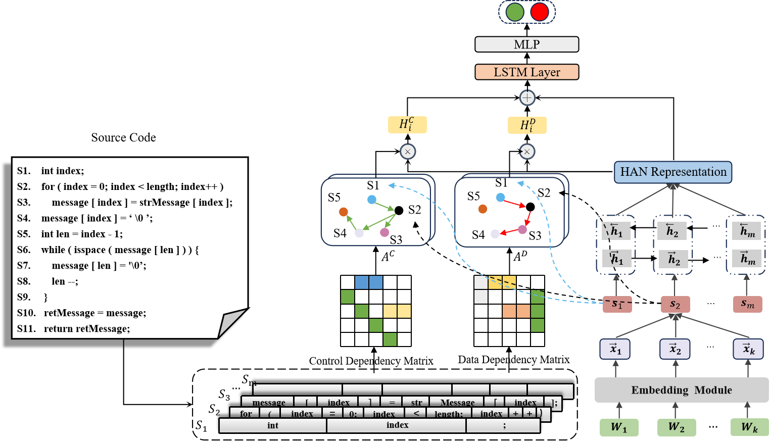论文概述:以往的基于神经网络的漏洞检测方法依赖于代码解析器来处理源代码,但不寻常的代码格式或特殊函数可能会导致解析错误,从而减少可用数据并引入训练偏差;同时,为特定语言设计的传统代码解析器在现代软件中难以集成多种编程语言,影响深度学习方法并导致可扩展性问题和成本增加。具体来说,我们对源代码通过层次注意力网络编码,得到源代码表示;同时对源代码基于启发式规则分析得到代码的数据依赖关系和控制依赖关系,得到源码的程序依赖关系图,以此来克服不同编程语言的漏洞检测障碍。我们在不同编程语言数据集上的评估表明,该方法优于其他现有的静态漏洞检测方法,并且该方法能通过一种语言的数据训练来检测其他语言代码中的漏洞。