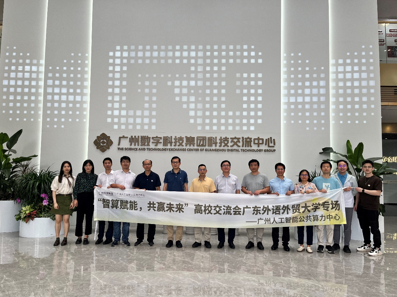 在李学军主任的陪同下,王常吉院长一行参观了广州数据集团展厅,深入了解了广州算力中心在人工智能技术应用、算力服务体系建设等方面的先进成果。
