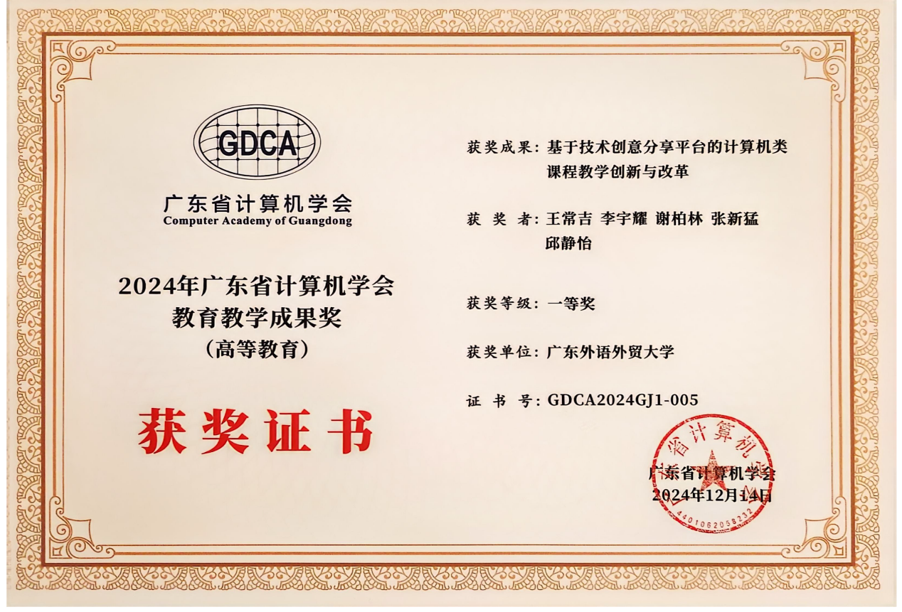 我院教学创新成果荣获广东省计算机学会教学成果一等奖
