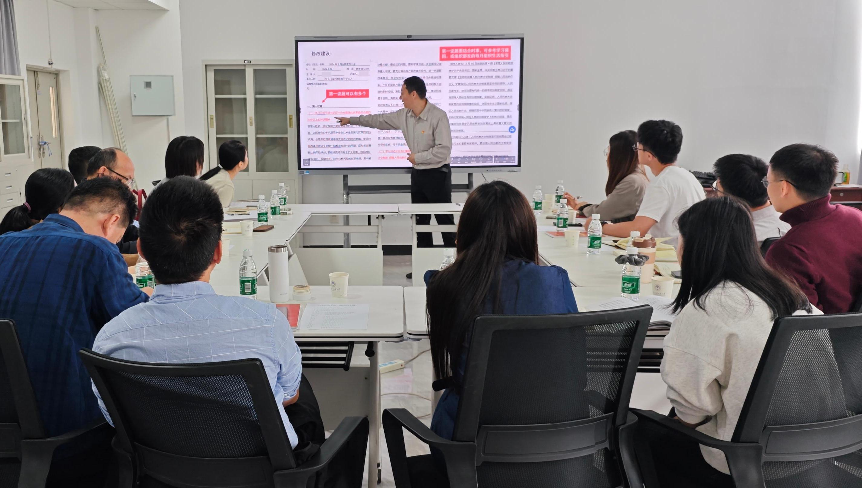 为深入学习贯彻新时代党的建设总要求,全面落实学校党委关于加强基层党组织标准化规范化建设的部署,切实提升党支部“三会一课”质量,11月3日,我院召开党支部建设规范化提升培训会。学院党委副书记董婷主持会议,学校组织部组织科科长魏煊作专题辅导。学院全体党支部书记、组织员参加会议。