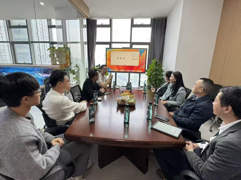 12月31日上午,以“校企联动,共话发展”为主题的广东外语外贸大学信息科学与技术学院校友企业走访活动在广州联展科技有限公司顺利开展。信息学院院长王常吉、党委副书记董婷带队,学院校友会秘书长黄渝添、常务副会长王东平、副会长周洁武及学院辅导员张荣、周浩翔组成的学院及校友会代表团队,与广州联展科技有限公司总经理钟衍凡、国内项目负责人潘卓文等企业方代表齐聚一堂,开展访企拓岗专项活动,旨在深化校企合作、拓宽育人渠道,精准对接毕业生就业需求。企业方国外项目负责人蒋隽、研发及产品负责人宁德泉通过远程接入方式参与活动。
