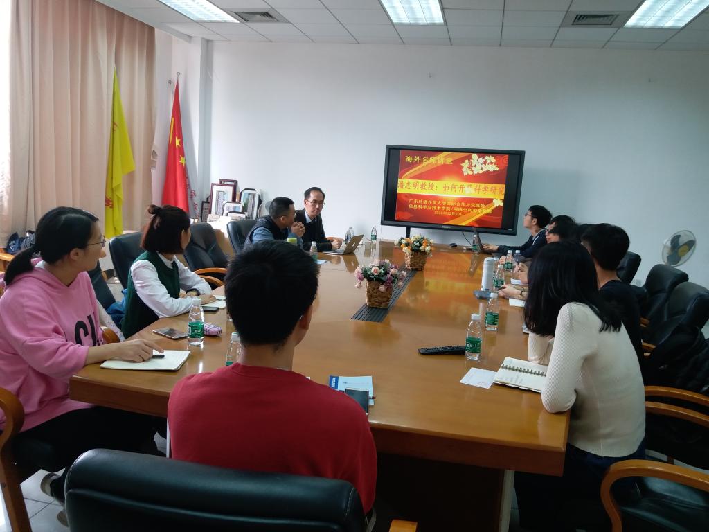 2018年12月20日上午,应网络空间安全学院王常吉副院长的邀请,英国阿伯丁大学终身教授潘志明教授为我院研究生开展“研究生如何做科研”的学术交流活动。