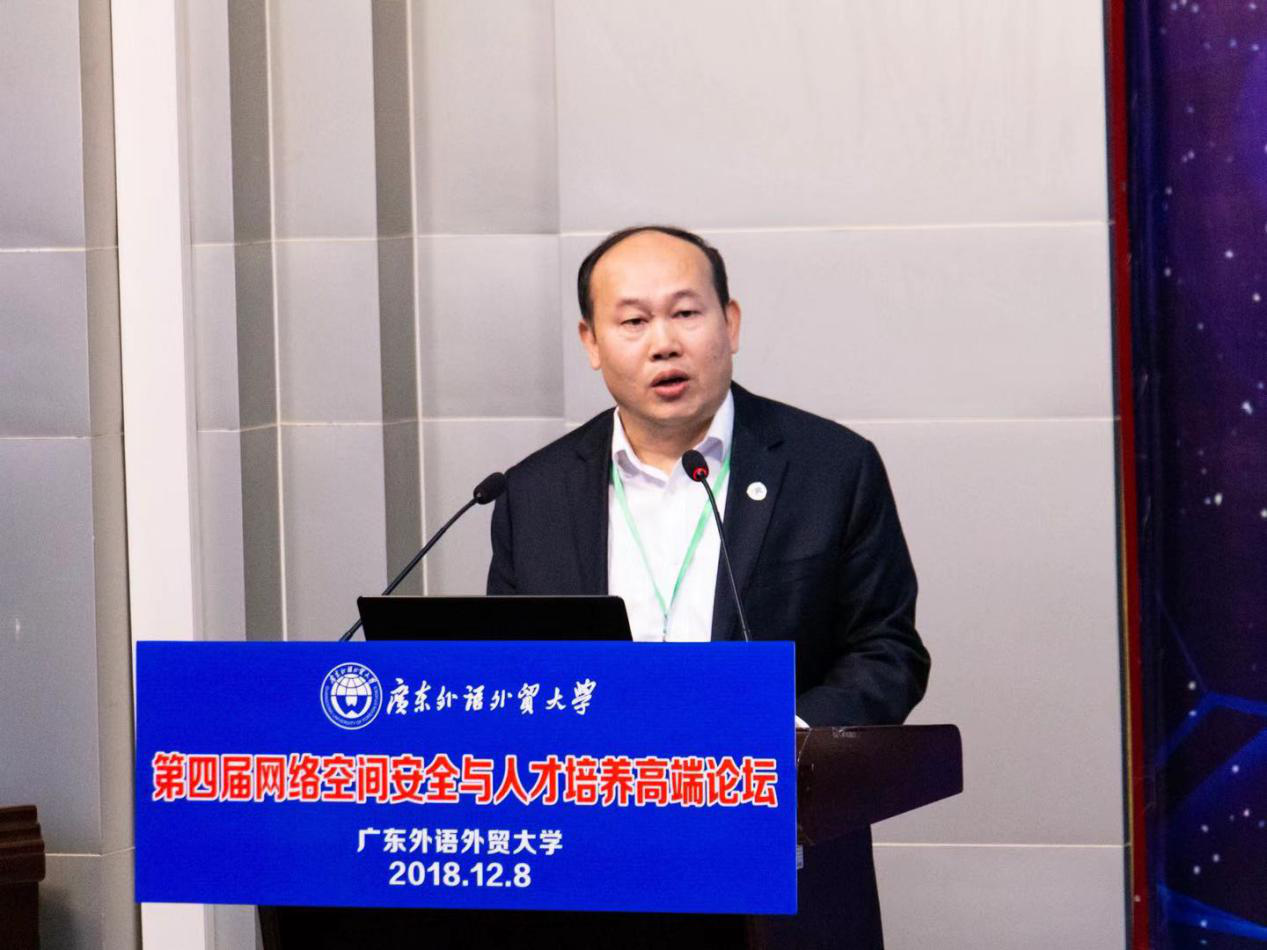 2018年12月8日,第四届网络空间安全与人才培养高端论坛在广东外语外贸大学第七教学楼水上报告厅举行。论坛由网络空间安全专业教学指导委员会和中国网络空间安全人才教育联盟指导,广东外语外贸大学网络空间安全学院主办,杭州安恒信息技术股份有限公司协办。来自政府、企业、高校、研究院所等多家单位的省内外专家代表100余人参加了论坛。