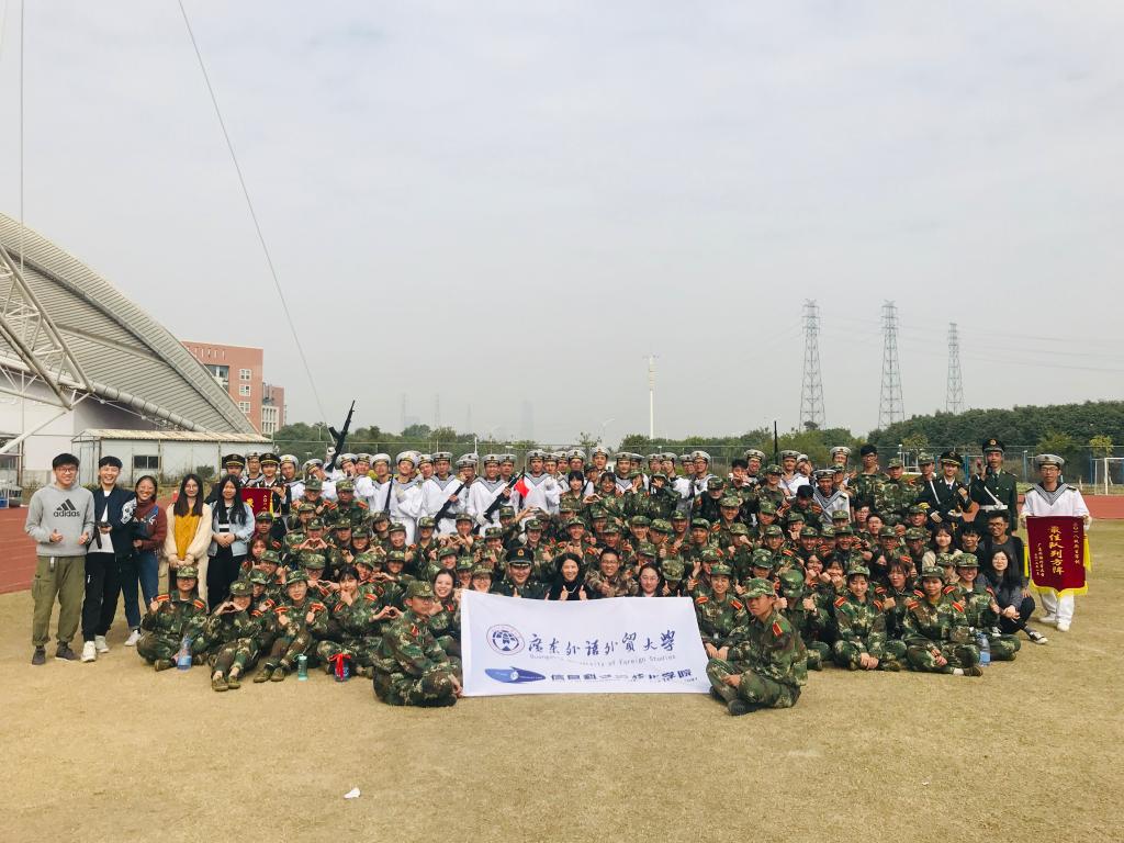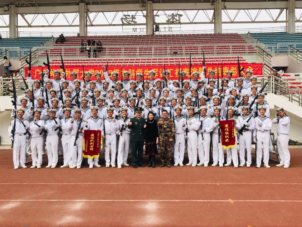 本网讯 1月25日上午,广东外语外贸大学(南校区)2018级本科新生军训汇演暨表彰大会在体育场成功举行,这也正式宣告18级的同学们为期两周的军训圆满结束。其中,信息科学与技术学院、网络空间安全学院(下称我院)学子在军训中的优异表现得到了学校领导及承训单位的表彰和肯定。