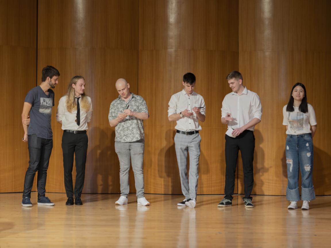 精彩的表演之后,到了活跃的互动环节,我校学生和考文垂大学的学生们一起进行“你写我猜”游戏,每个参与者都乐在其中,现场笑声不断,两方的友谊也在欢乐中越来越紧密。欢声笑语过后,信息歌队与考文垂大学交流团中英师生一起合唱《友谊地久天长》,在温暖的歌声当中,我校师生与英国考文垂大学交流团留下一段了珍贵而又美好的回忆,此次欢迎仪式展现出我校对外宾到来的热烈欢迎,促进双方交流。