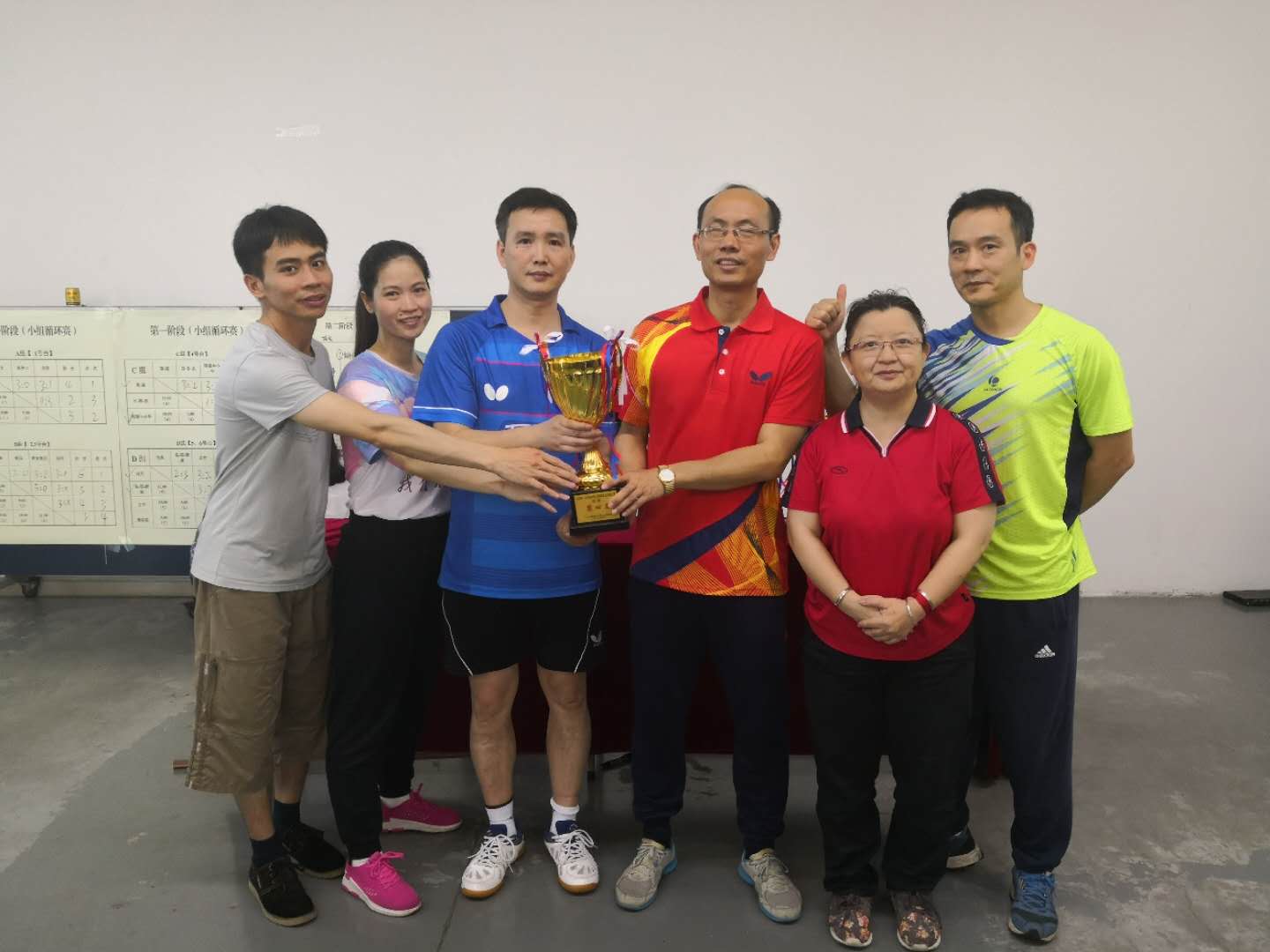 在2019年4月21日广东外语外贸大学教工乒乒球比赛中,我院教工乒乓球队员们奋力拼搏,艰苦奋战,小组赛首战3:0战胜机关,四分之一决赛中3:2险胜金融学院,最终杀入半决赛。半决赛中惜败冠军英文学院,最终获得团体第四名的好成绩。
