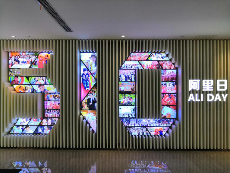 在阿里巴巴总部的接待大楼,一进门迎面而来的就是铺满整面墙的触摸屏,上面用时间线和视频资料动态的展示了阿里迄今为止20年的成长历程中重要的时间节点和历史事件。