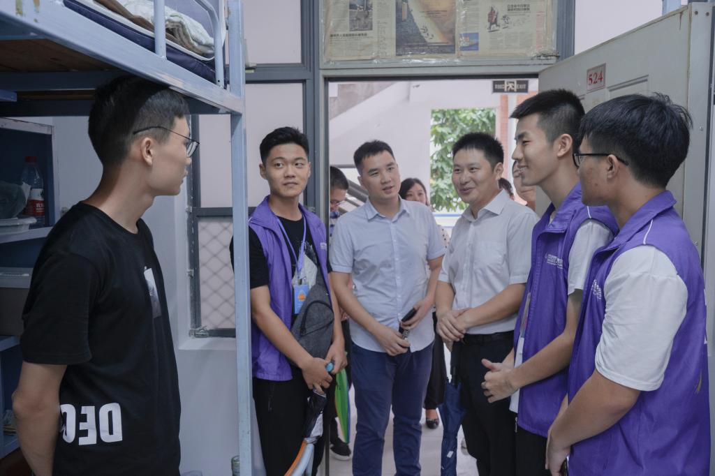 25日下午,肖锋副书记与学院全体辅导员走访了七栋新生男生宿舍,送去学院对新生的慰问和关心,鼓励同学们尽快融入信息学院大家庭,适应新的学习和生活环境。
