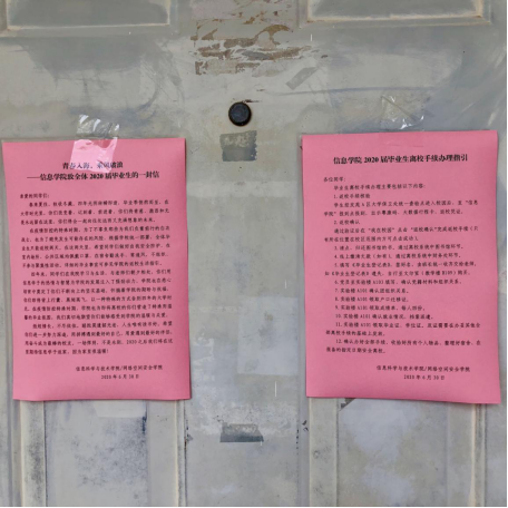 【信息学院致2020届毕业生的一封信、离校手续办理指引】
