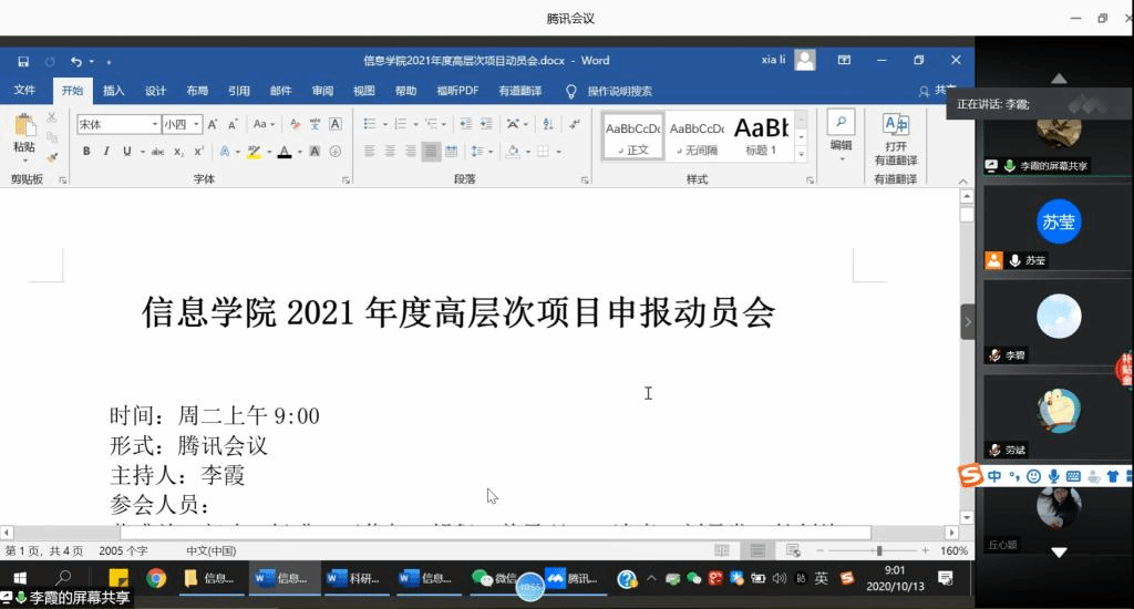为落实科研处《关于做好2021年度高层次项目申报工作的通知》相关工作要求,10月13日上午,信息学院召开2021年度高层次项目申报动员会,本次会议为线上会议。信息学院院长蒋盛益,邝建、杨曦、丁若尧、胡程、姜思羽、王连喜、刘景发、杜剑峰、陈仕鸿、李碧、李宇耀等27位老师参加了动员会。动员会由信息学院副院长李霞主持。