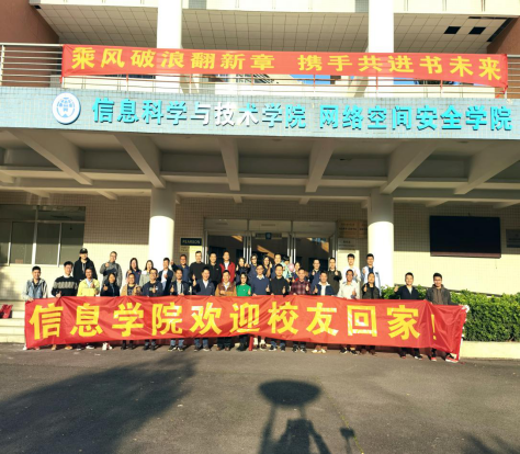 年级座谈交流结束后,校友们重游校园,在信息学院新办公区域留下了美好的合影。