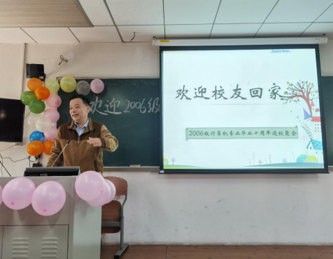 2006级班导师代表李心广教授对校友们的求学小故事娓娓道来,令人动容。副院长李霞教授分享对2006级任课印象,介绍了学院硕士点情况,欢迎校友们积极报读或推荐学院硕士点。肖锋副书记介绍了学院校友会建设情况,希望校友们能够一如既往地关心和支持母校和学院的事业发展,积极加入各级各地校友会,积极为母校和学院的建设和发展建言献策。王连喜则以数据挖掘实验室师兄的身份分享了感悟与情怀。