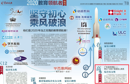 近期,羊城晚报开展2020教育领航者项目评选,我院“1456”思政育人体系喜获高等教育类“综合实力奖”。