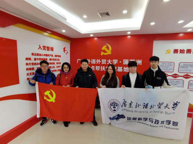 为深入贯彻习近平总书记在决战决胜脱贫攻坚座谈会上的重要讲话精神,全面落实学校党委对口帮扶精准扶贫精准脱贫工作的部署要求,2020年12月30日,信息学院开展“不忘初心助脱贫,牢记使命奔小康”主题党日暨扶贫慰问活动,党委副书记肖锋、办公室主任刘丽玉、辅导员宋鹏飞、教务秘书董潇洁和研究生党员郭畅、熊国鼎一行赴清远市阳山县蒲芦洲村,将学院党委的慰问、全体师生的爱心捐款和过年物资等提前送到村民家中。