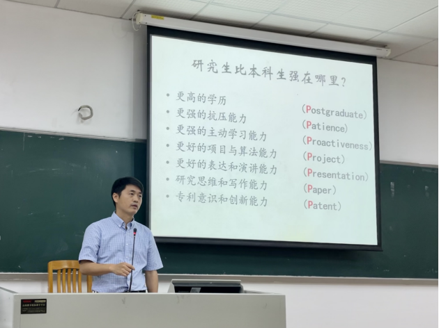 唐明董硕士生导师以“高层次人才的高需求”引出自己的分享。他从考研的目的、考研的好处和注意事项三个方面向同学们进行分享。