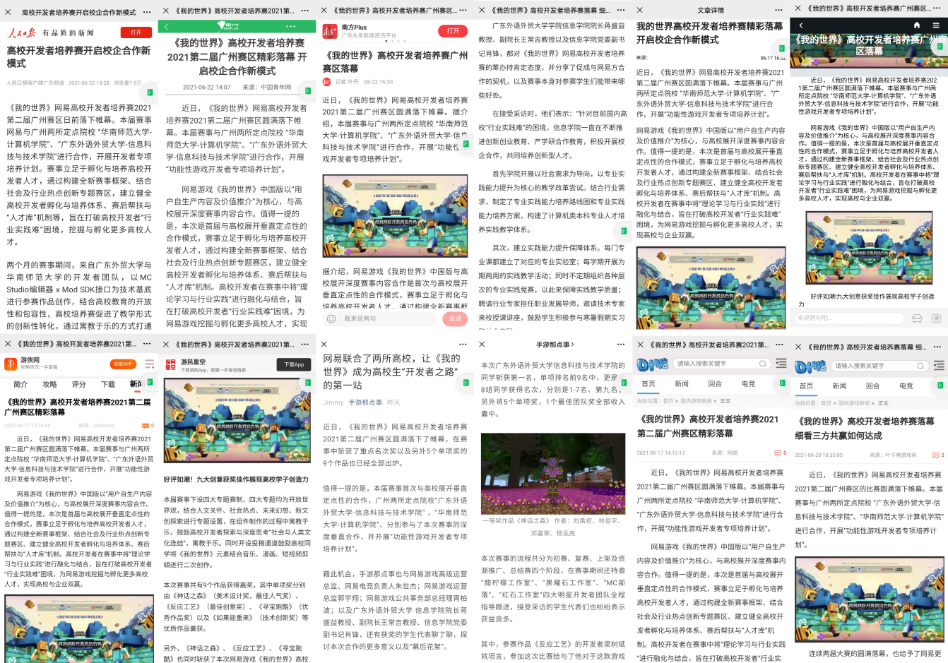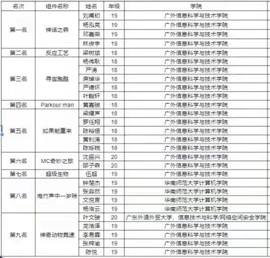 立足于孵化与培养高校开发者人才,网易与高校深入合作,开启校企合作新模式,举办了《我的世界》2021年网易高校开发者培养赛。信息学院学子组队斩获大赛第1名;在单项排名前9名中更是有8组学子获得名次,分别是第1-7名和第9名;另外还将大赛5个单项奖、1个最佳团队奖全部收入囊中。大赛佳绩得到人民日报、中国青年报、南方日报等十多家媒体的关注报道。