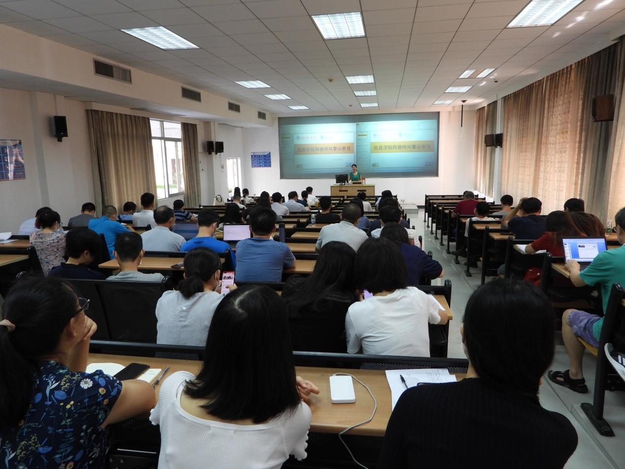会议开始,朱珍葶就师德师风和警示教育对全院教师做了要求。副院长李霞布置了本学期科研项目和研究生培养的相关重点工作。副院长谢柏林重点对如何做好专业、课程和项目申报工作提了具体做法,并强调了开学上好第一堂课的重要性。副院长王常吉对学生实习、实验室建设和国际合作交流等工作的情况和困难做了汇报。副书记肖锋主要从疫情防控、党史教育和特色培养等方面介绍了本学期学生工作的重点。院长蒋盛益以“强内涵,树形象,提升学院影响力”为题,从学院的生存和发展的高度布置了工作重点。最后,朱珍葶围绕师德教育、教师使命、希望与要求进行师德师风教育动员讲话。她向学院教师介绍了广东省师德建设教育月的发展历程,指出“师道不立,则天下无善人。” 她指出,近几年无论是精神风貌还是工作实绩都取得了很大进步,相信在全体教师的共同努力下,信息学院的未来一定会更加光明。