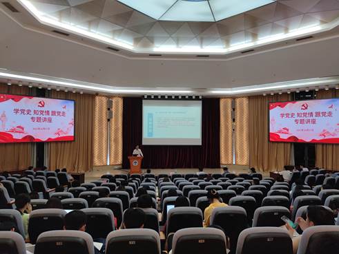 本网讯 为深入学习贯彻习近平总书记在庆祝中国共产党成立100周年大会上的重要讲话精神,推动党史学习教育深入开展,厚植信息学子爱党爱国情怀,10月27日晚上,信息学院邀请校党委常委、副校长何传添教授在南校区八角楼做“学党史、知党情、跟党走”专题讲座。信息学院书记朱珍葶、副书记肖锋以及信息学院师生200余人在现场聆听了讲座。