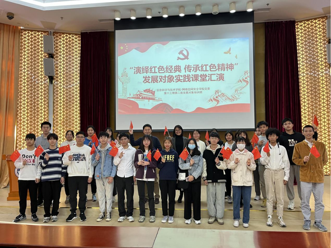 12月2日下午,信息学院在南校区八角楼顺利举办“演绎红色经典,传承红色精神”发展对象实践课堂活动,信息学院党委副书记肖锋,辅导员董婷,学生党建指导老师龙晓岚以及150名本科生参与此次活动,其中98名为第十三期第二批发展对象培训班学员。