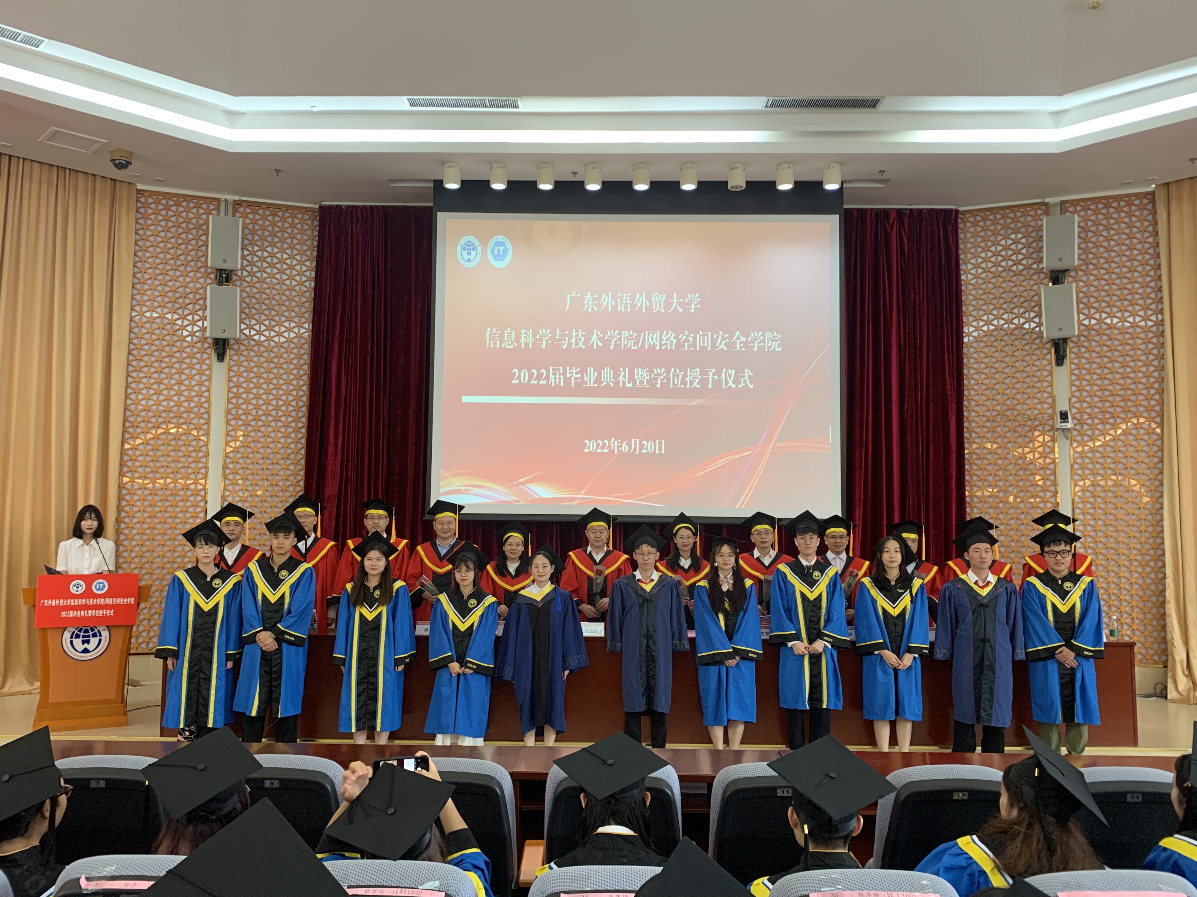 岁月不居,时节如流。同学们初入广外信息学院的青涩模样仿佛还在眼前,就到了挥手作别、奔赴远方的时刻。毕业典礼在全场齐唱《凤鸣岭南》的歌声中落下帷幕。“山育佳木,水滋美兰,明德尚行。德馨有容,行实致远,学贯中西。”承载着新时代的希望与使命,2022届信息学院毕业生高扬理想风帆,长风破浪,心有繁花,一生芳华。