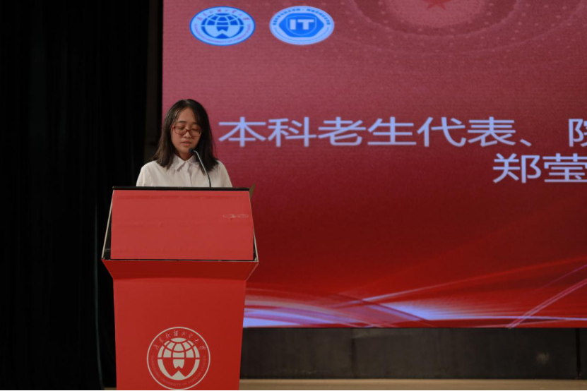 随后,院团委副书记郑莹莹同学代表本科老生发言。郑莹莹指出制定好自己大学的规划,不要随波逐流;同时积极参加课外活动,合理安排时间,不断充实自己的大学生活。