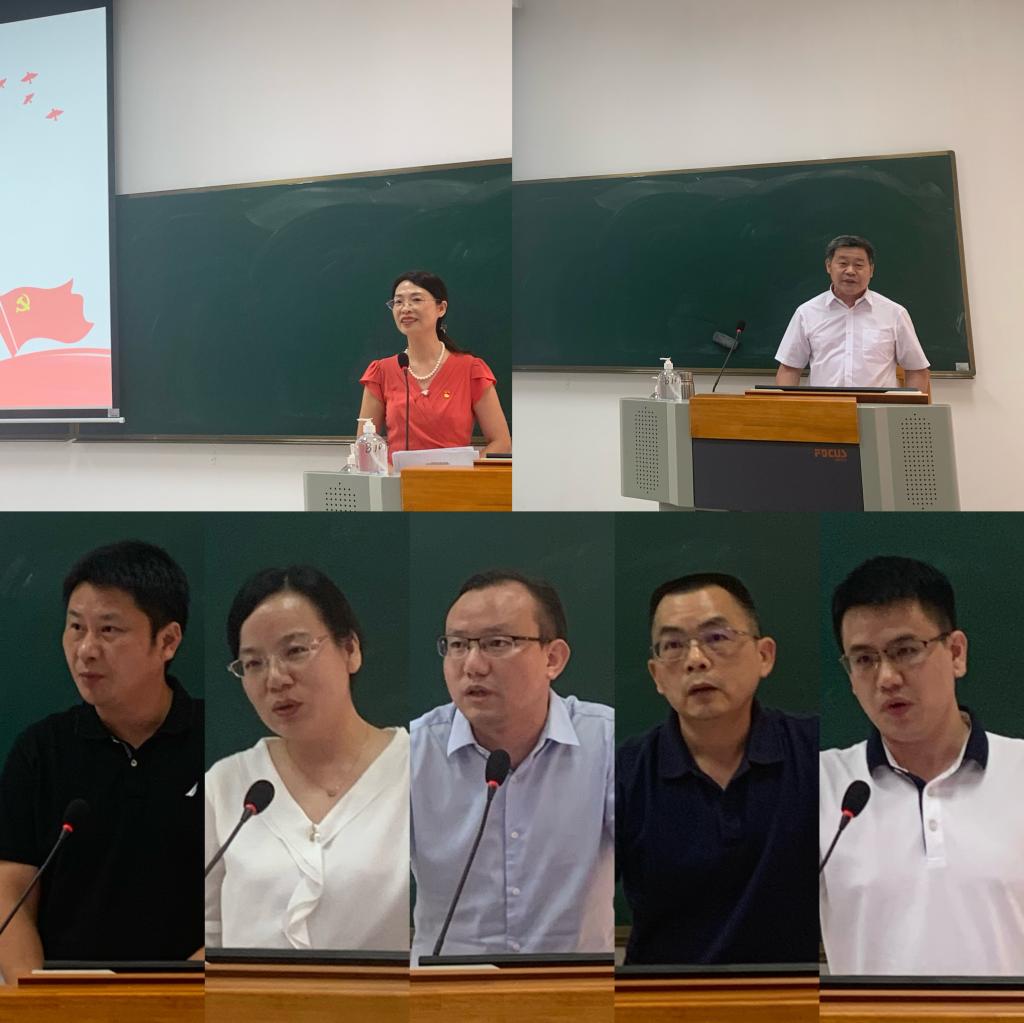 (从左到右、从上到下依次为:党委书记朱珍葶、院长蒋盛益、党委副书记肖锋、副院长李霞、谢柏林、王常吉、非通实验室副主任王连喜)