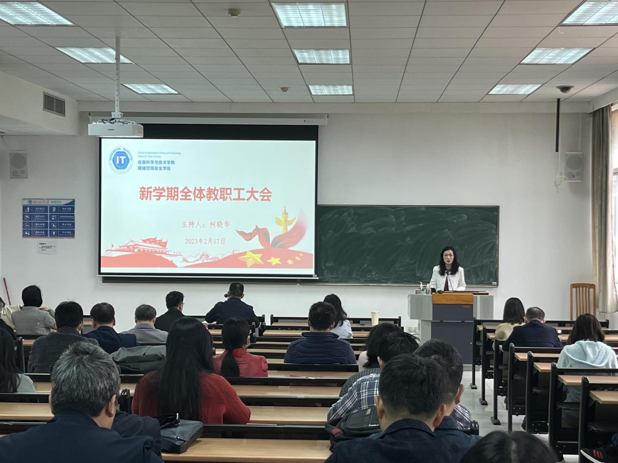 本网讯 2月17日上午,信息学院在大学城校区实验楼B107召开新学期开学工作会议,学院领导回顾了上学年的成绩与不足,规划了新学期的方向与重点,全体教职员工参加。开学会议由学院党委书记柯晓华主持。