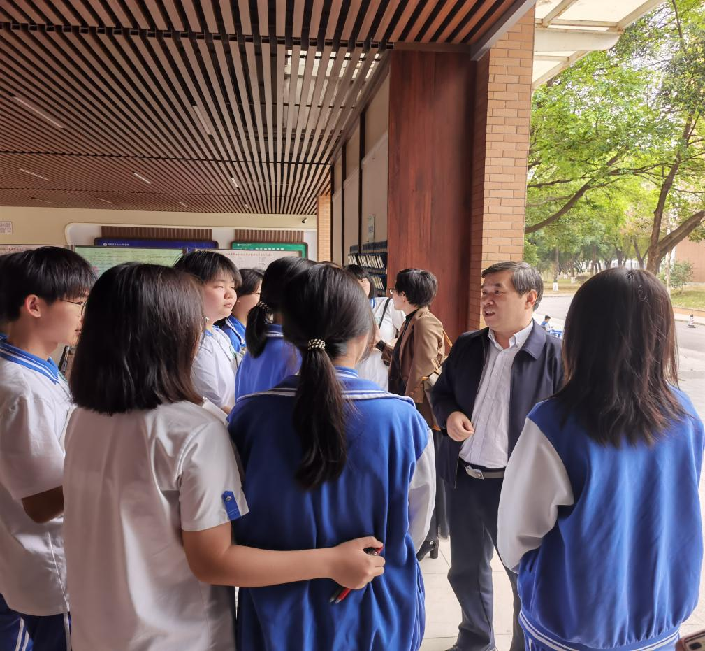 我校教务部副部长邓丽君为高二级学生代表进行了广外特色介绍宣讲,对我校发展历程、办学特色、招生专业、校园环境、学生就业等具体情况进行介绍,并总结了选择广外的“十大理由”,引发学生的浓厚兴趣。宣讲会后,焦方太副校长耐心为学生答疑。学生们热情高涨,答疑会一再延长时间,部分学生在会后依依不舍,与来访团一路同行,抓紧时机同广外的领导老师们交流今后在广外学习生活的梦想和期盼,感谢老师们的辛勤付出。