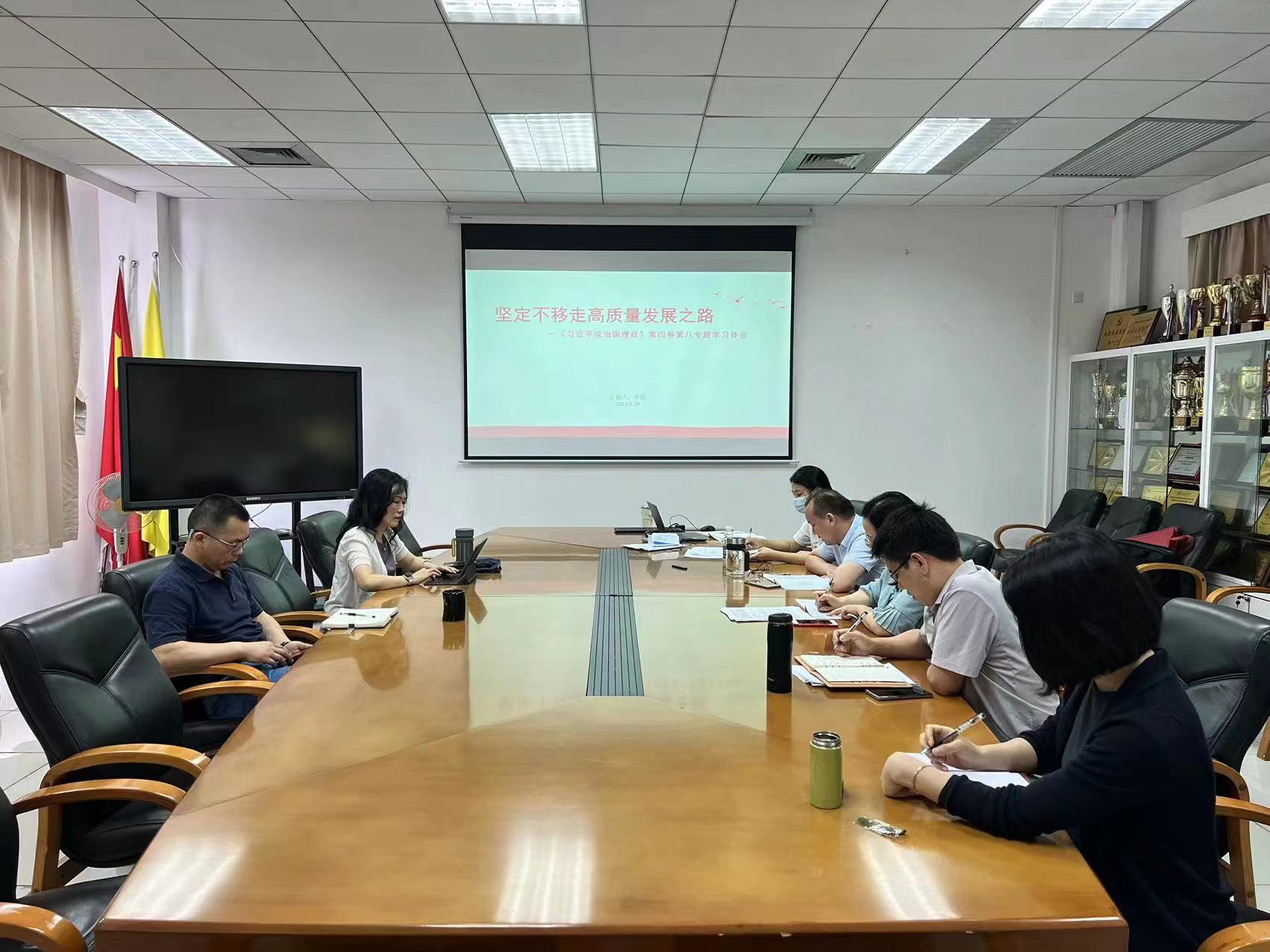 5月29日上午,我院在大学城校区实验楼C201会议室召开学习贯彻习近平新时代中国特色社会主义思想主题教育专题学习会。副院长李霞作《坚定不移走高质量发展之路——<习近平谈治国理政>第四卷第八专题学习体会》专题学习报告,学院全体党委委员、领导班子成员参加学习。