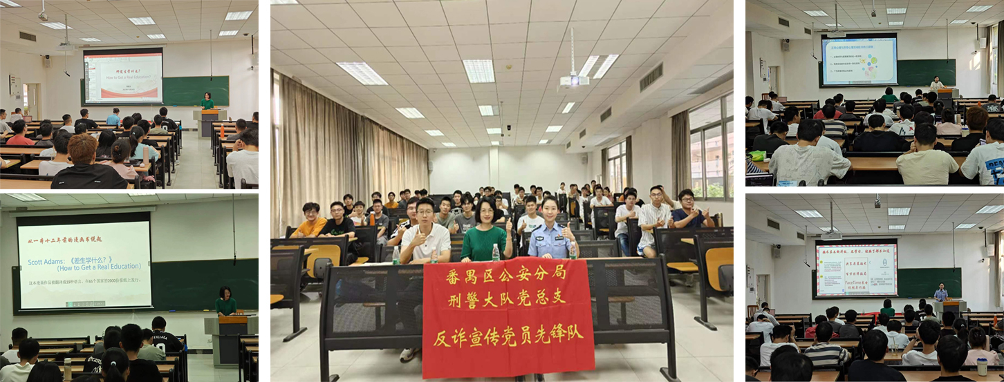 学院心理援助队叶敏老师阐述了研究生群体常见的心理危机及应对措施,鼓励同学们正视心理健康问题,敢于求助、善于互助。研究生辅导员宁其翀做纪律教育专题报告,对《研究生手册》中的重点条例进行了解读、导读,要求同学们遵纪守法。会议还邀请了番禺反诈中心的庞彦警官做反诈骗宣讲。庞警官细致入微地讲解了各种诈骗手段,生动地解开了犯罪分子诈骗的谜团。